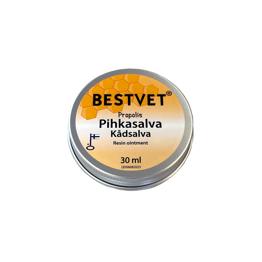 BESTVET Pihkasalva on kotimainen luonnontuote, joka on kehitetty erityisesti lemmikkien herkkää ihoa ja tassuja varten. Tämä tehokas mutta hellävarainen eläinten pihkasalva sisältää suomalaista kuusenpihkaa, joka tunnetaan antibakteerisista ja ihoa uudistavista ominaisuuksistaan.